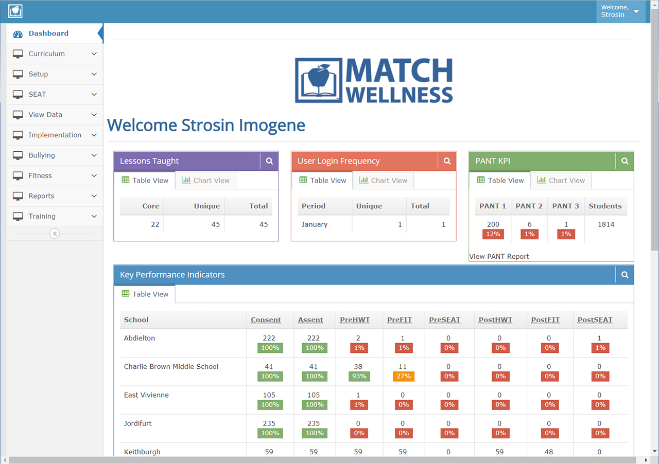 MATCH works for administrators by providing a data warehouse at the fingertips of administrators. BMI Status, Fitness, Bullying and Health Behavior reporting allow real-time analysis to monitor program fidelity and effectiveness.